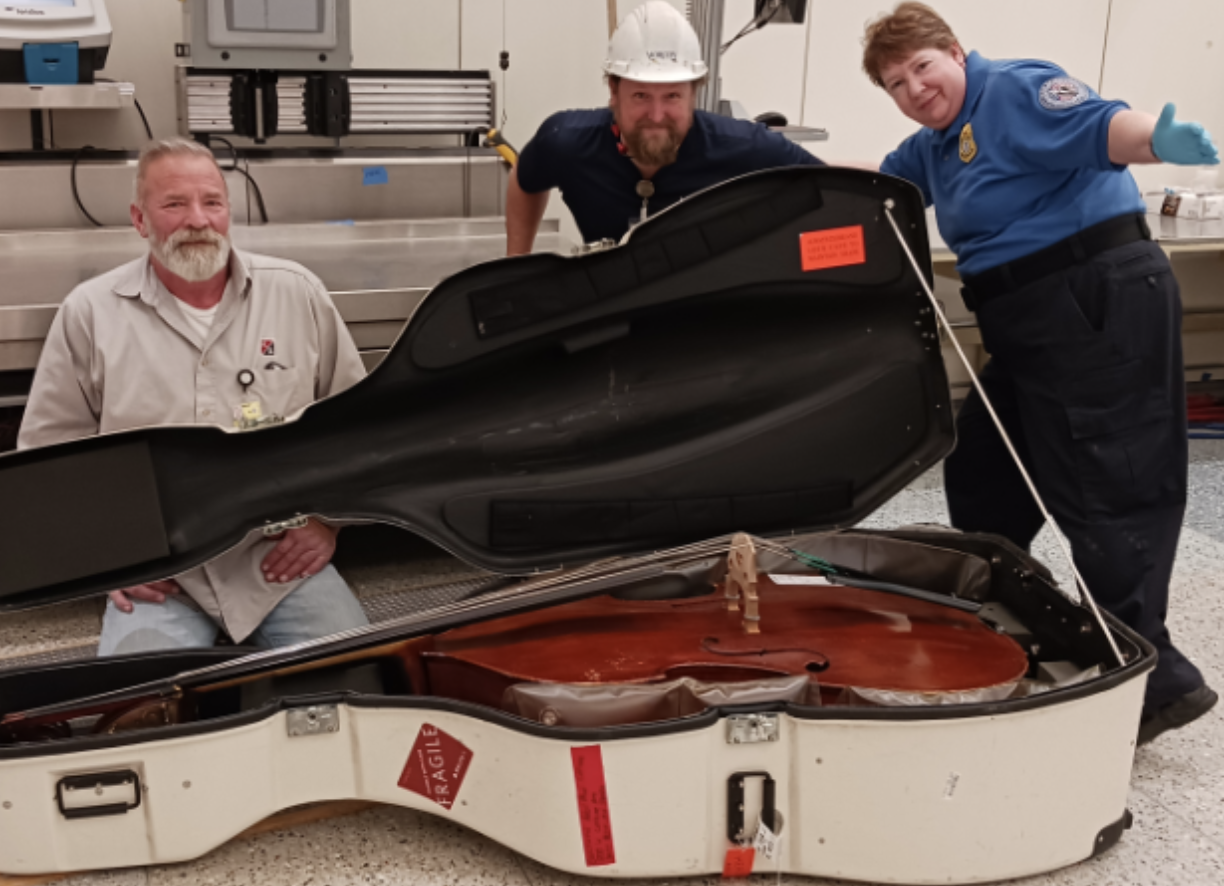 “I write from the Minneapolis-St. Paul Airport where the Gustavus Choir is waiting to fly to Paris and then to Barcelona. I received word from Delta that an oversized piece of baggage was delaying check-in for the other Gustie musicians because the case — for the Double Bass— could not be opened. I caught up with TSA at oversized baggage and a security team was looking at the locked case. One problem: the student had already passed through and was at the gate. We could not reach her to come back to unlock the case. Enter Shane Forsman of Kraus-Anderson, superintendent at MSP. He said, “If you are authorized, we can get that open for you.” The case needed a special wrench. They got the case opened, security checked it, pushed it through, and the rest of the Gusties could check in and leave for Paris and Barcelona. Yay!! Shane is a real star and truly went above and beyond!!”