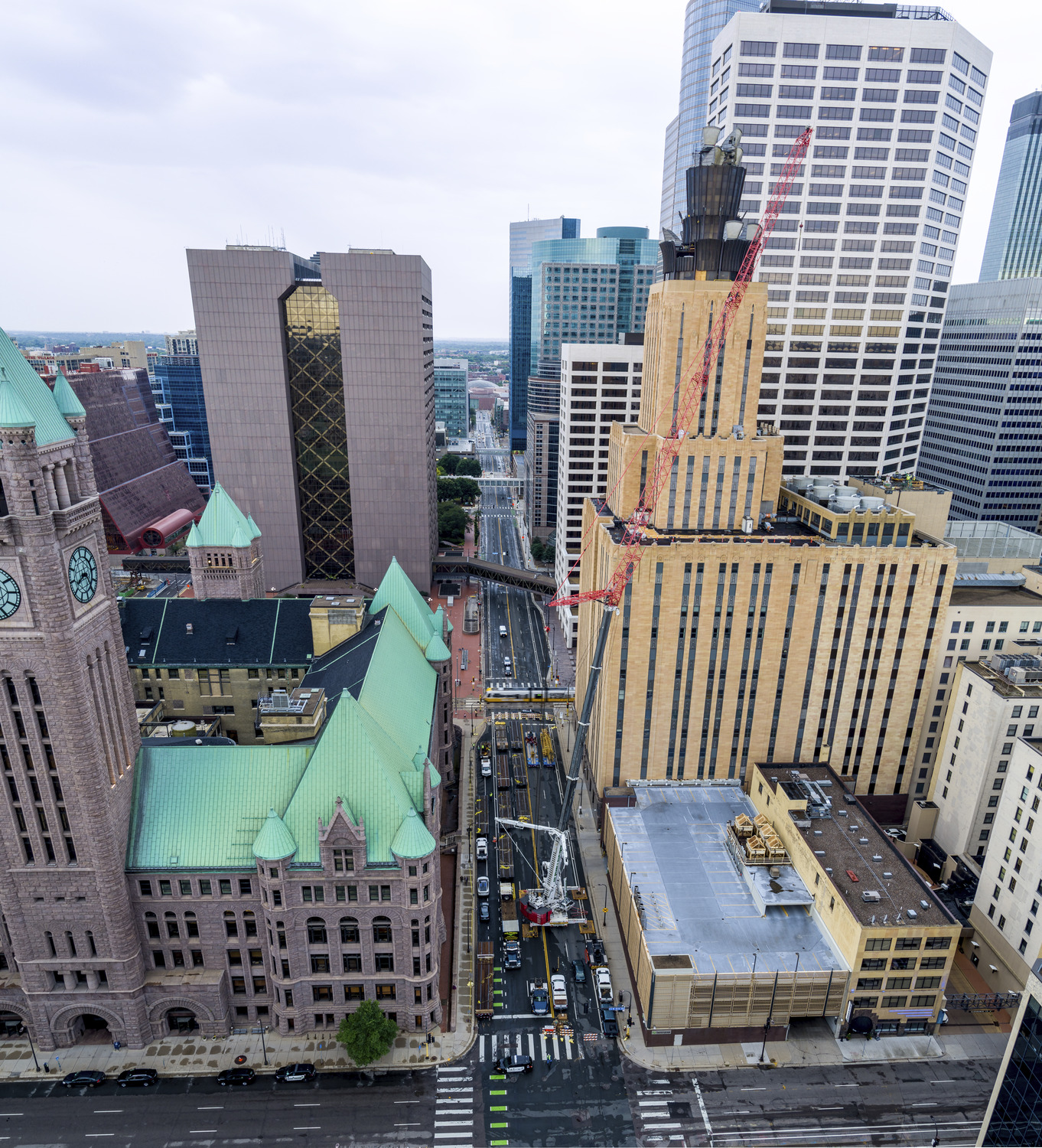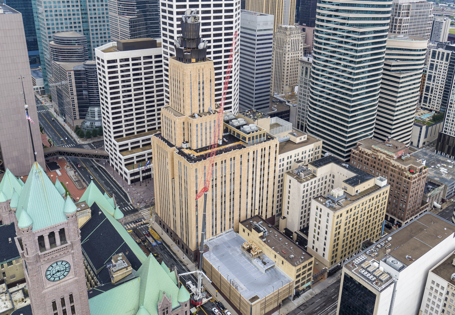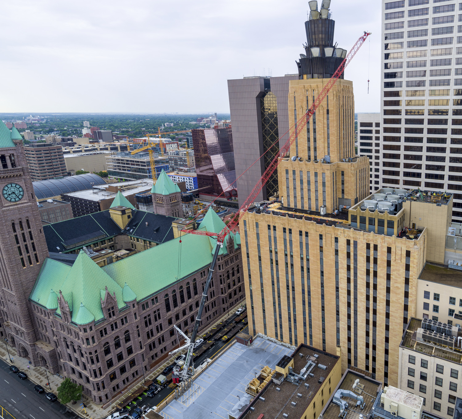 The crown sitting atop the 33-story CenturyLink building in downtown Minneapolis has been part of the skyline for decades. While its outdated microwave technology was no longer in use and deteriorating, dismantling the structure presented some unique challenges. Because of the risk of fire, blow torches couldn't be used to remove the steel. Instead, workers hand cut the steel pieces using sawzalls. Kraus-Anderson completed the removal of the 80-foot-tall steel structure in six months. https://www.youtube.com/watch?v=A9wlwc8MisI