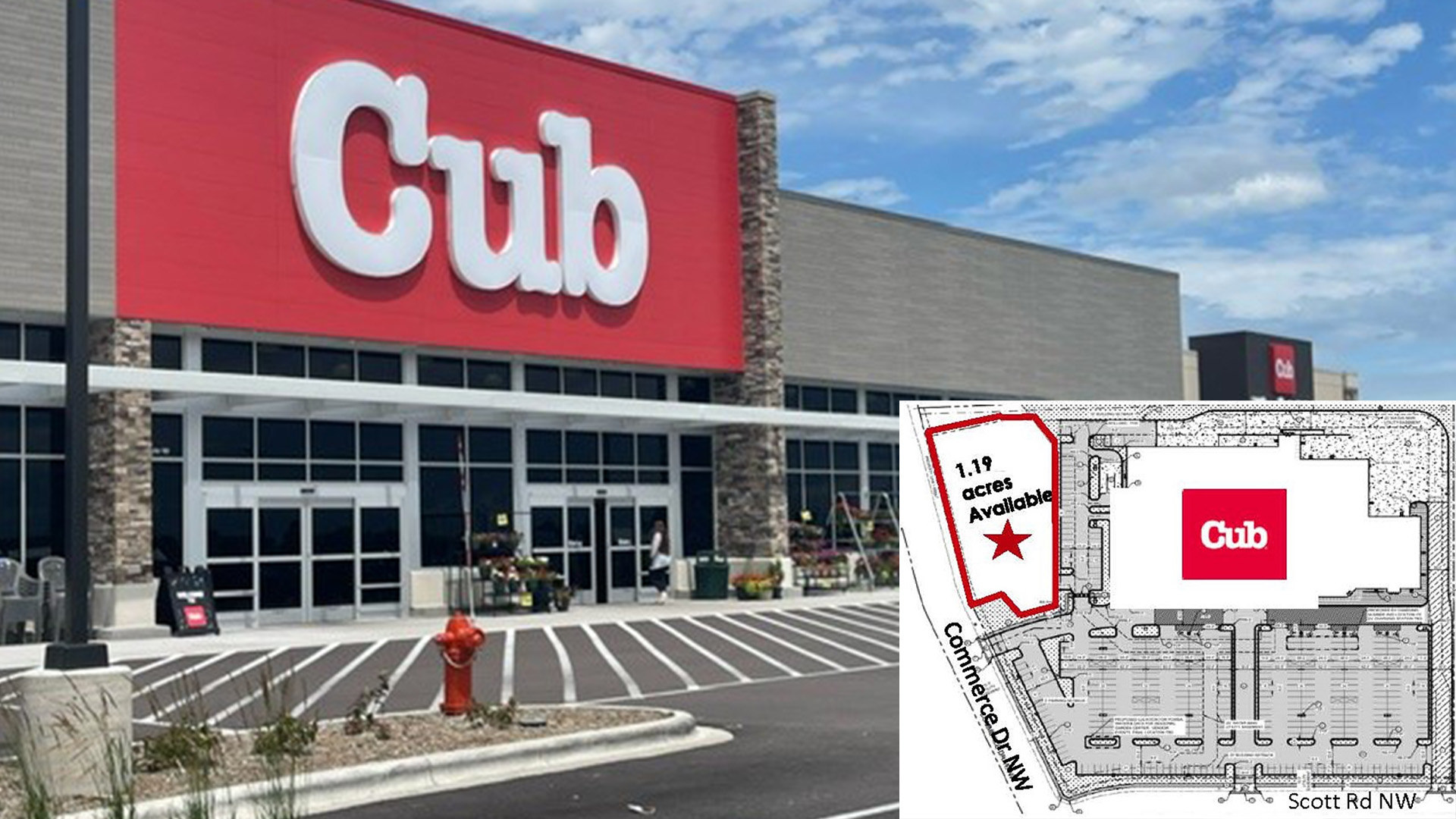 Exciting new retail development includes Cub Foods’ newest format for grocery, liquor, and pharmacy and includes a 1.2 acre pad site available for sale, lease, or build-to-suit.