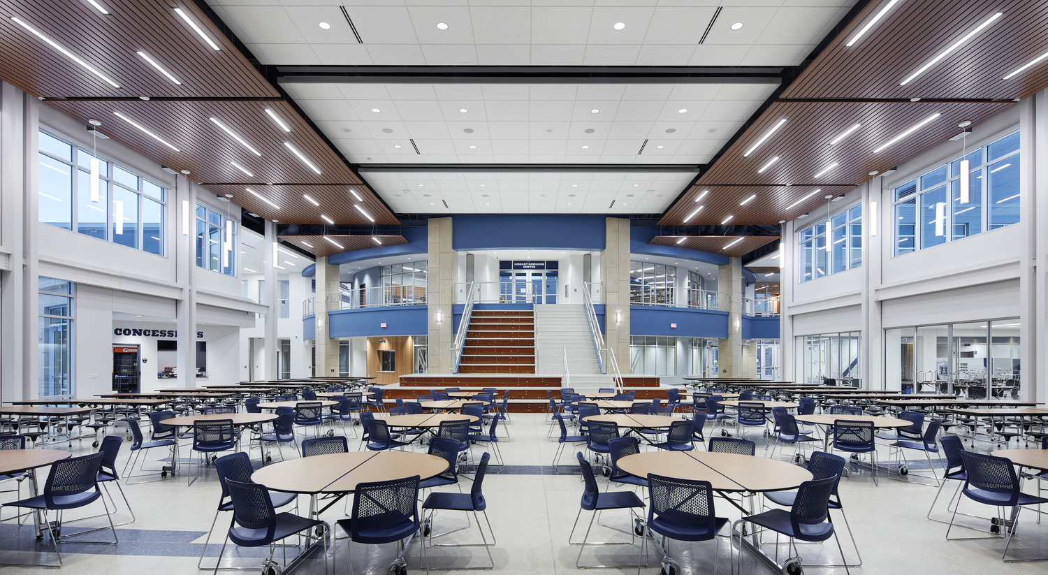 The Hudson School District - High School Addition & Renovation project involved a 438,454 square foot addition and renovation of the existing high school in Hudson, Wisconsin. The project includes a new STEM collaboration area, Freshman Academy lockers, tech ed, media center, new academic wing, first floor atrium/forum area, cafeteria, auditorium entrance, second floor promenade overlooking commons/cafeteria and view into the second floor media center on one side and the new classrooms on the other side, enclosed courtyard in the new academic wing, gymnasium entry from the forum area, new fitness and cardio area with view of second floor running track, second floor running track that spans the length of the existing new and old gymnasiums and the fitness area. Along with a 32,000 SF addition to the Middle School that included classroom and gymnasium space and renovations and upgrades.