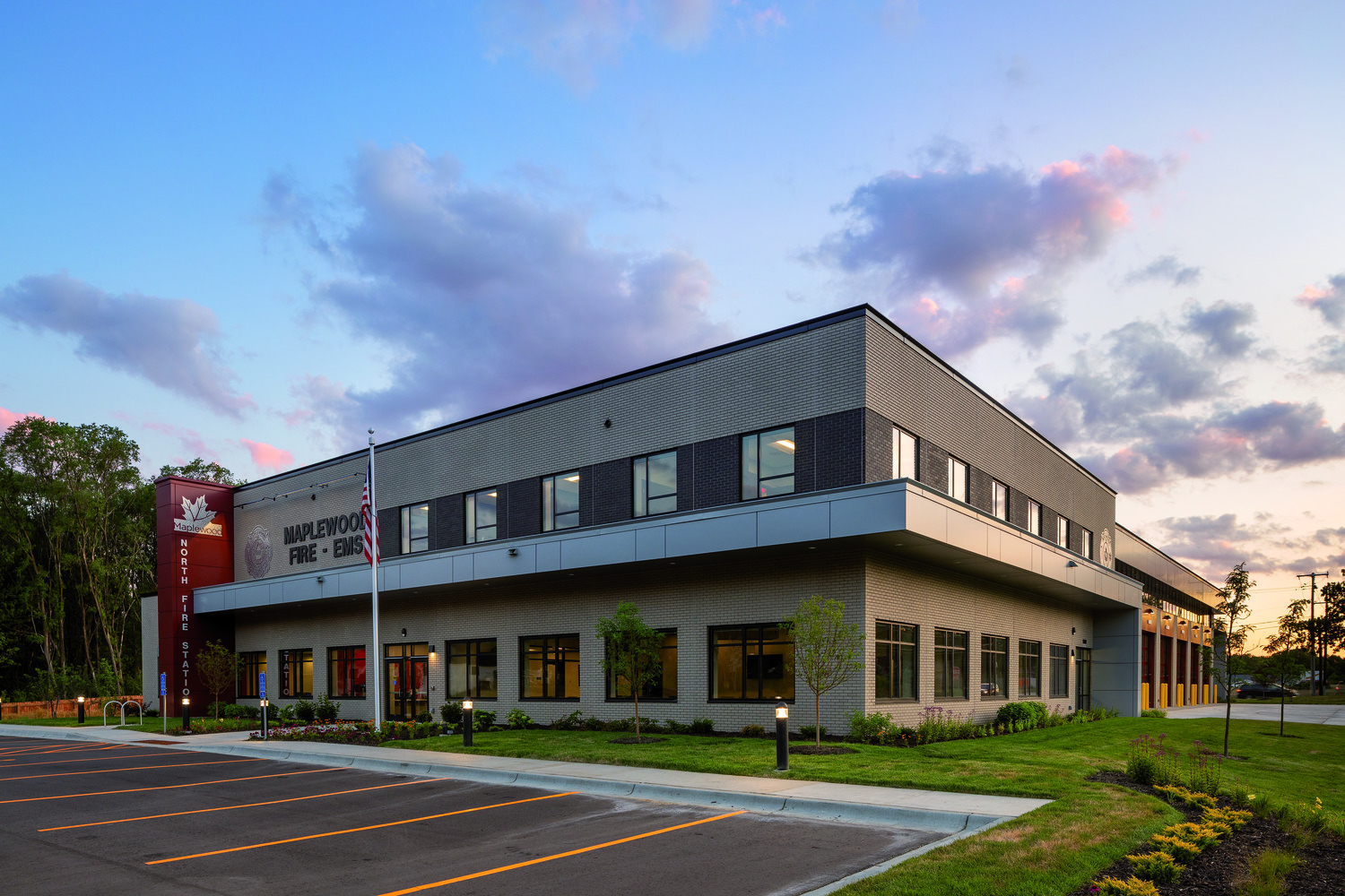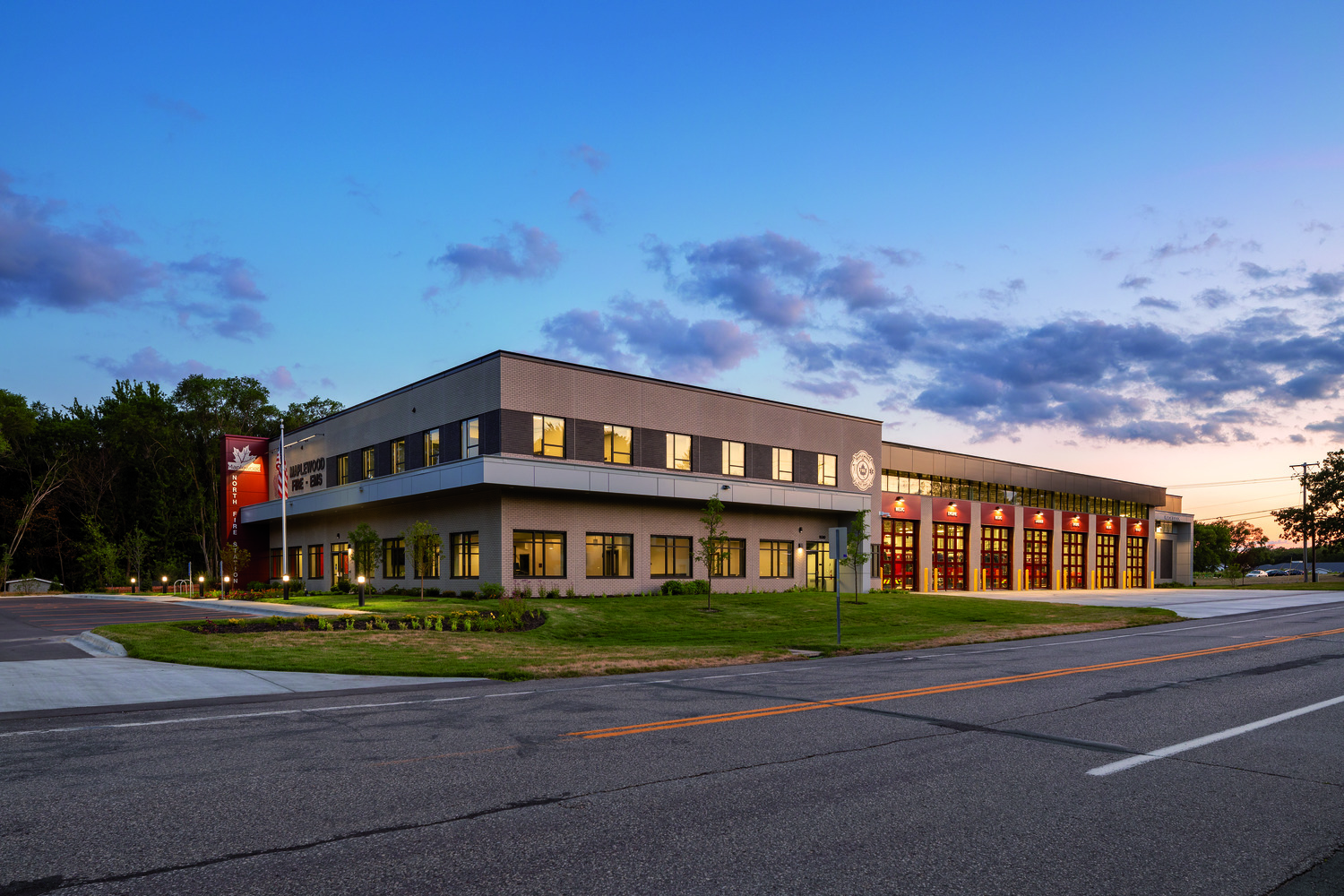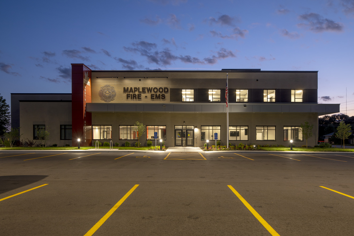 Kraus-Anderson (KA) completed a replacement fire station for the City of Maplewood. The project consists of demolishing the existing fire station and a 2-story new fire station with seven apparatus bays, command parking, gear turnout, wash/decon, SCBA areas, EMS storage, administrative offices, training/community room, conference room, kitchens, eight bunk rooms, laundry, kitchen, dayroom, showers, and patio.