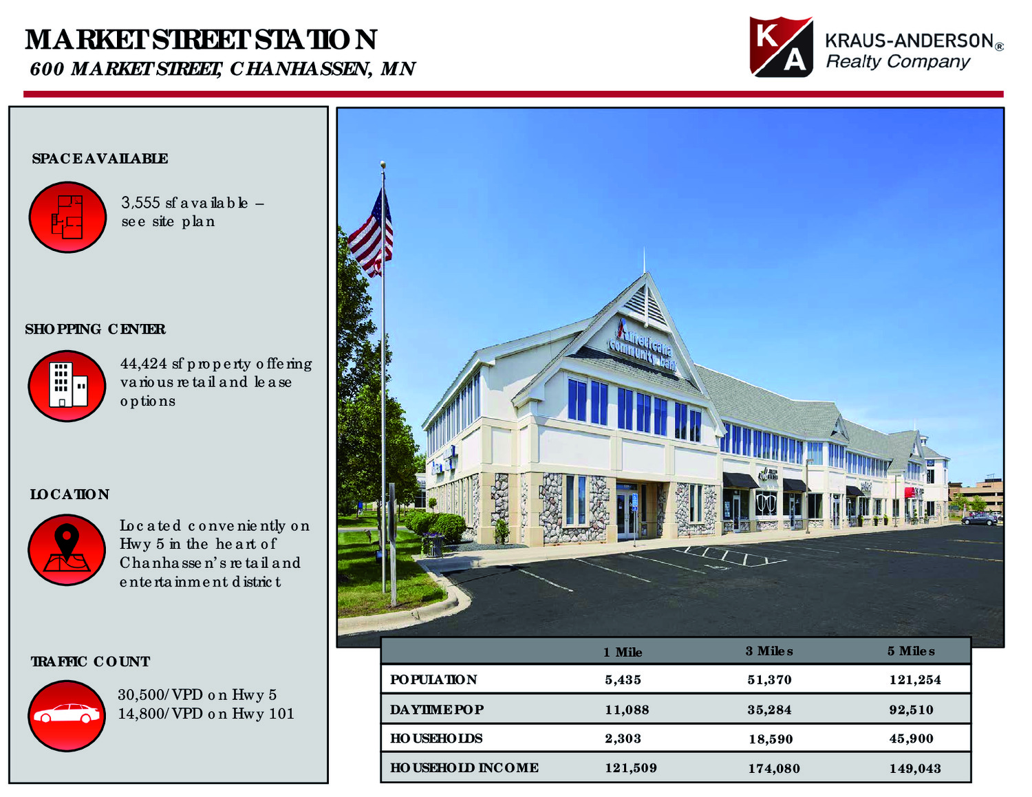 This award-winning mixed-use development offers various office and retail lease opportunities. Located conveniently on Hwy. 5 in the heart of Chanhassen’s retail and entertainment district, adjacent to Cub Foods, Aldi, and Chanhassen Dinner Theatre. Major tenants: Spalon Montage, Jimmy Johns, Med Box Grill, Wink Family Eyecare