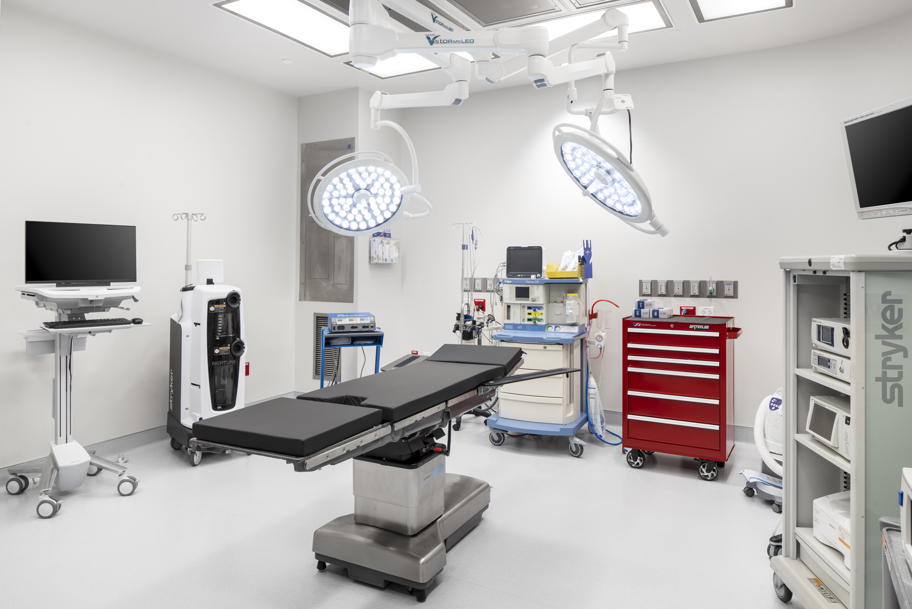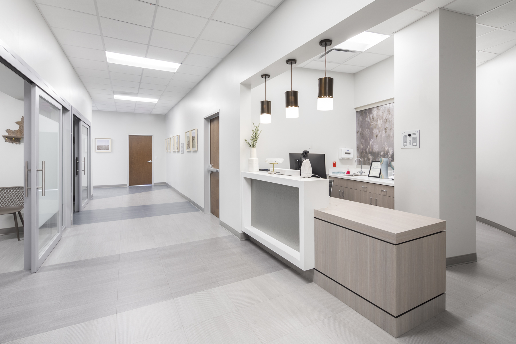 This 7,200 SF build-out for an outpatient surgical center, complete with two Class B and C operating rooms, pre-op consultation areas, PACU area with control centers and nurse station monitoring, restrooms, injection room, clean/soiled work room, dictation area, nurse lounge, waiting area and on-site backup generator placement.