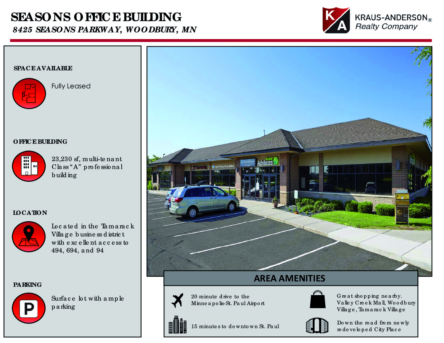 Down the road from newly redeveloped CityPlace, this Class A multi-tenant professional building is located in the Tamarack Village business district with excellent access to 494, 694 and 94.
