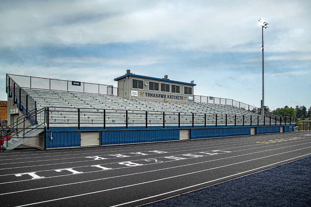Kraus-Anderson Construction (KA) has completed a renovation project featuring outdoor athletic improvements at Tomahawk High School in Tomahawk, WI. Designed by Stevens Point-based Point of Beginning, the construction project adds a new turf on the football field and 1,000-seat bleachers; and a new track surface, long jump, pole vault and exterior lighting.