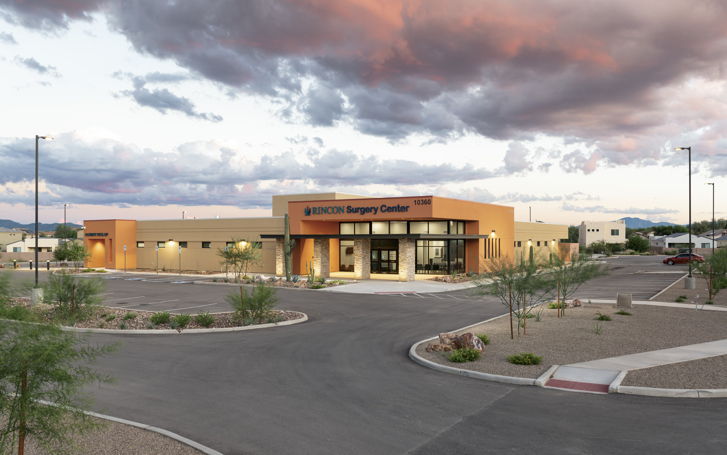 The one story, 17,000-square-foot facility on Tucson Medical Center Healthcare's Rincon campus provides additional medical and surgical services, as well as the ability for a 3,000-square-foot future expansion. Designed by Orcutt Winslow, the property features rooftop solar panels, low- and no-water use landscaping, a cool roof system to reduce heat island effects, trees to shade the building and glass, and the use of reclaimed water for irrigation.