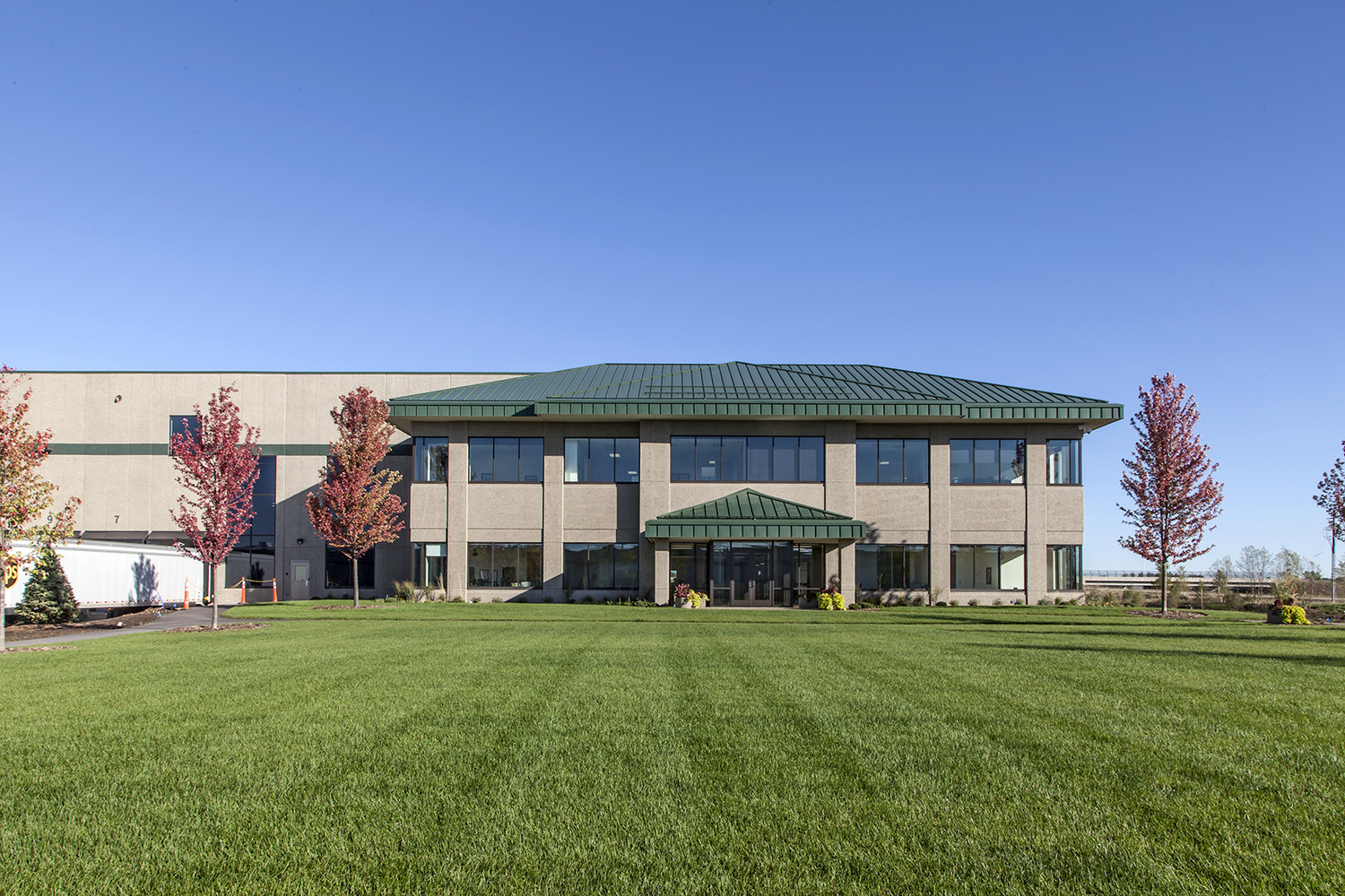 The 646,000 s.f. facility was constructed on a 62.5 acre site. The project consists of 610,000 s.f. of warehousing with a 32í clear height at the first column line and 36,000 s.f. of office space. The site development, including underground utilities, storm water ponds, erosion control, grading and landscaping has been included in the scope of work. Exterior pavements include a concrete truck court area and bituminous parking areas. This building is a cross-dock warehouse with approximately 103 dock positions with parking for 200 additional trailers. One hydraulic elevator provides accessibility to 2nd floor with parking for 250 employees.