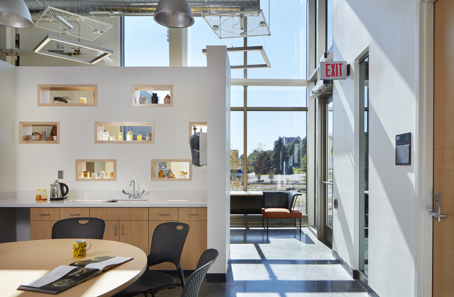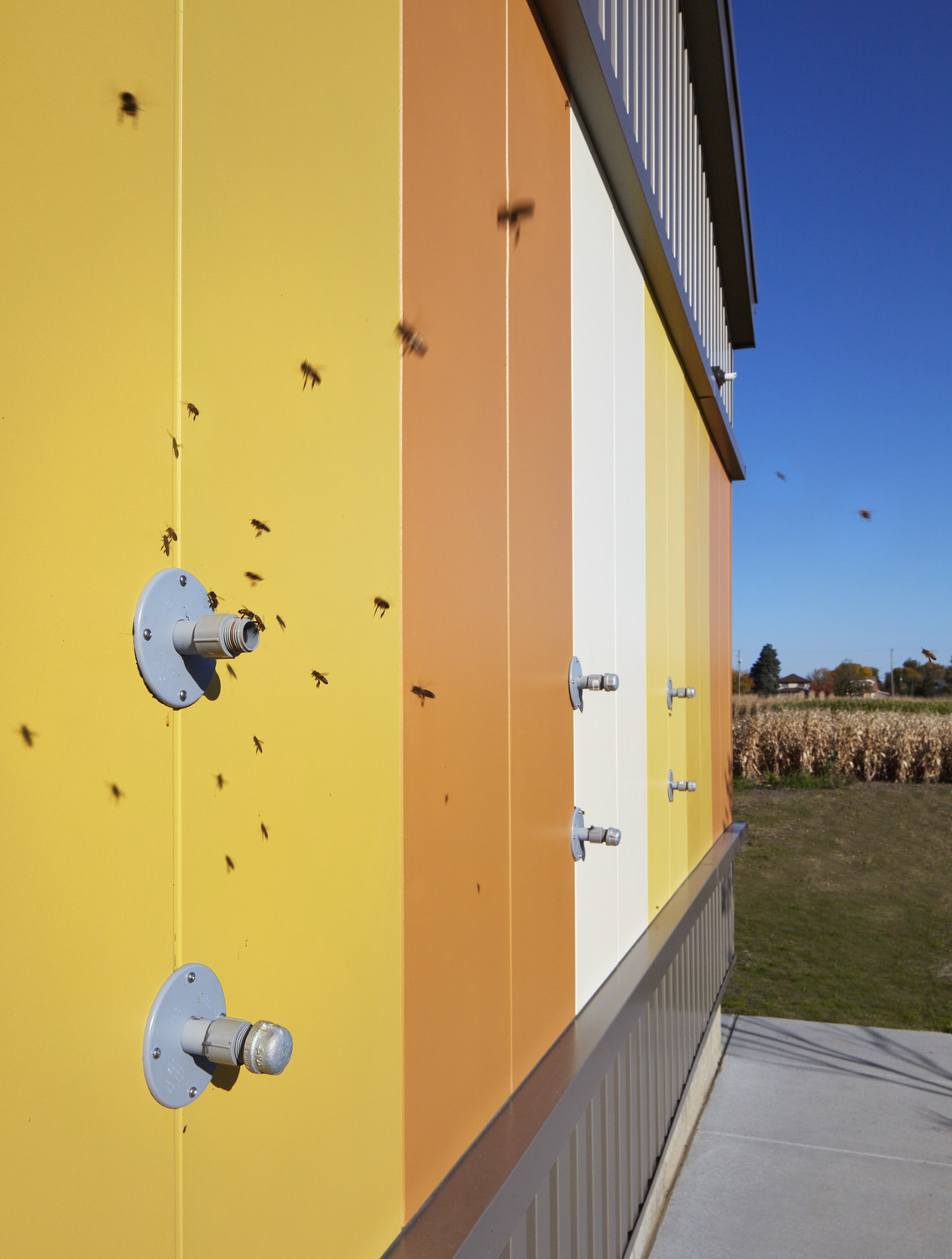 The Center for Bee Research and Outreach facility is a new state-of-the-art 10,700 s.f. facility with flexible biological science research and field research space, commercial-grade honey extraction, offices, beekeeping apiary and pollinator gardens. To bring electrical power to this new building, it was necessary to upgrade switchgear and tie into the electrical power from the adjacent Plant Growth building without disruptions.