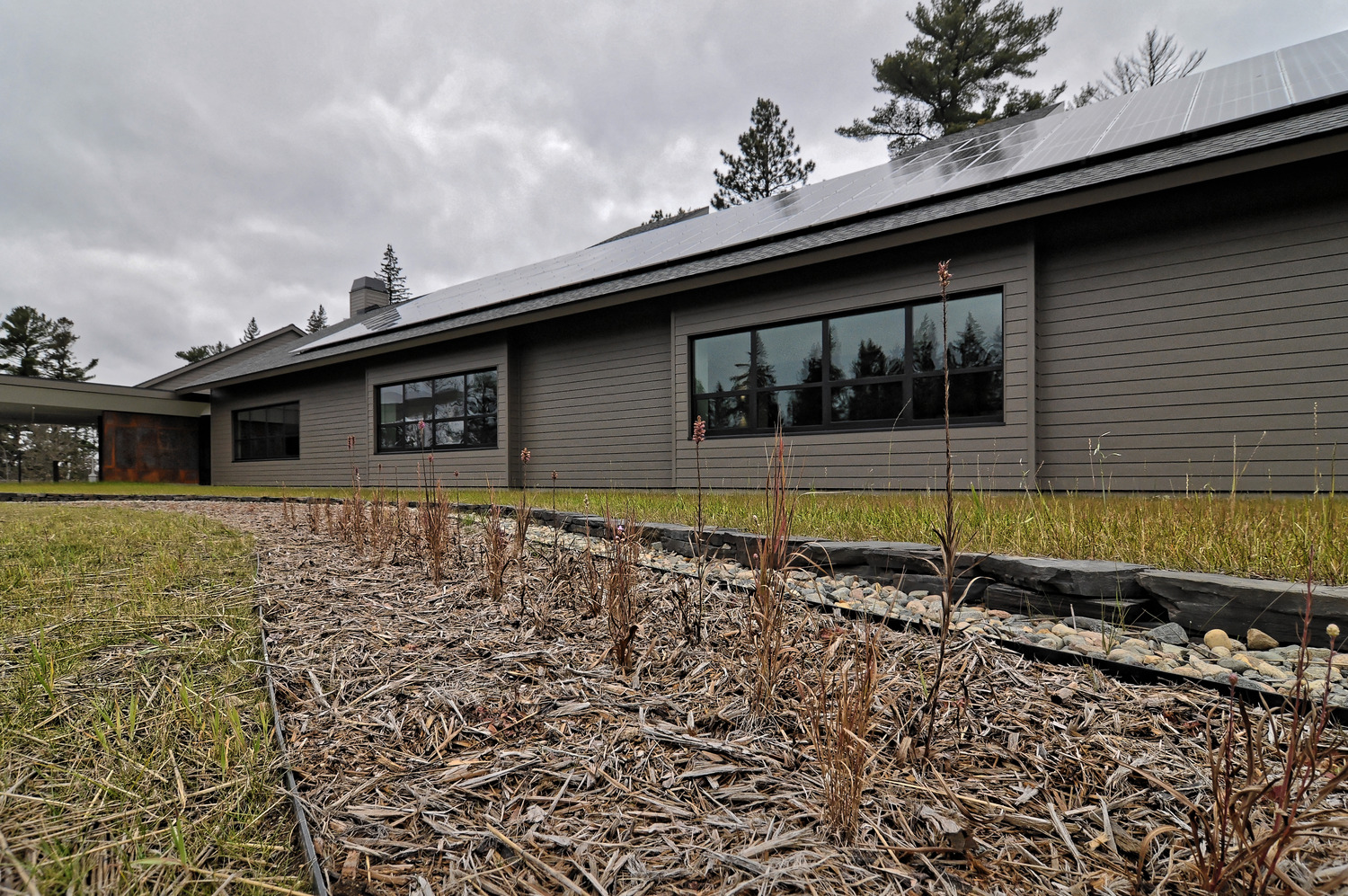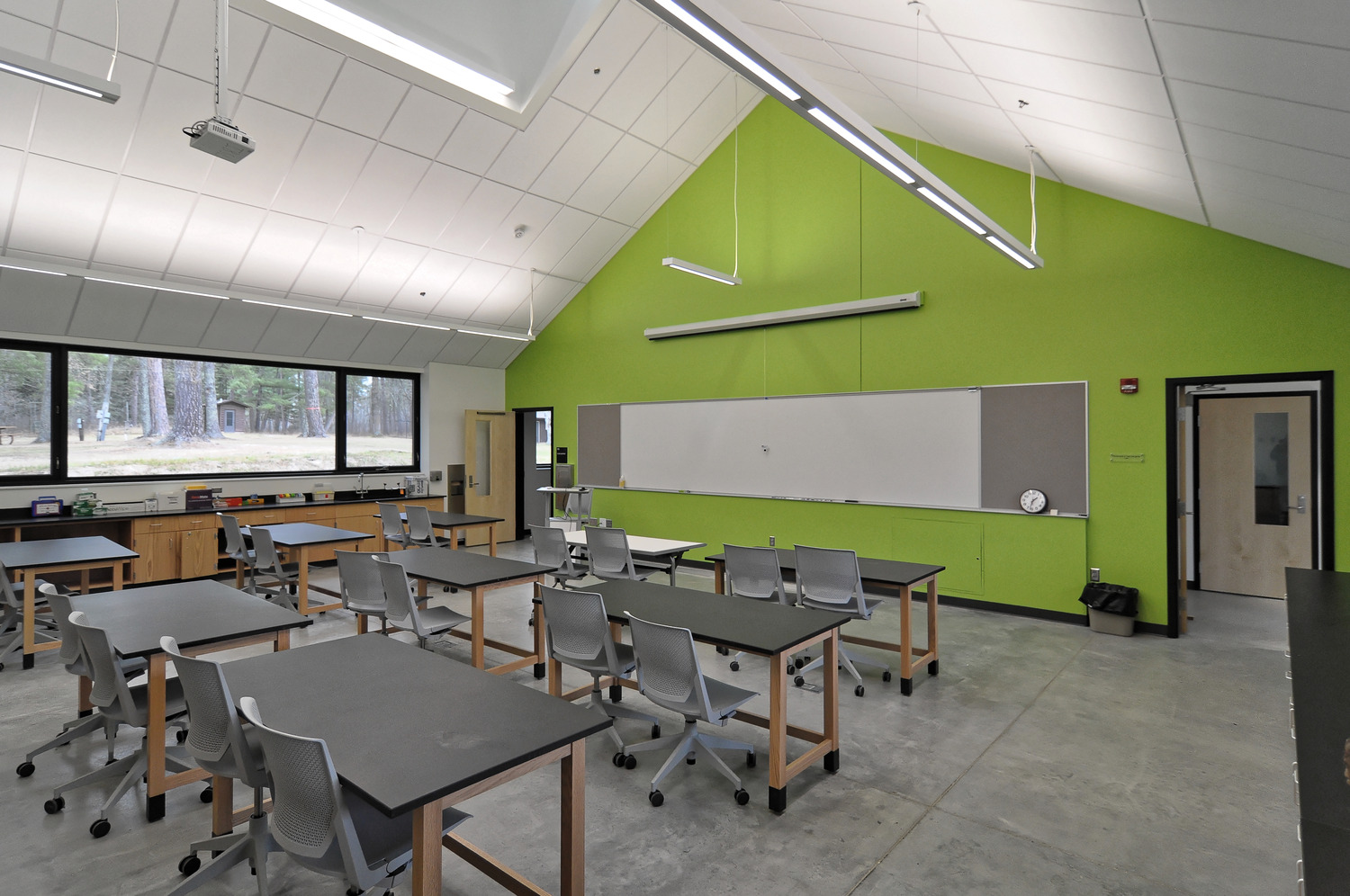 The zero-energy footprint, interpretive facility provides year-round classrooms and tech-enabled laboratories; plus offices, computer labs, library and a flexible space auditorium. Project was built to exceed LEED Gold status, with sustainable amenities including 16-well geothermal heating and cooling system, efficiency plumbing, operable windows and skylights for cross ventilation. The facility generates electricity 365 days a year through photovoltaic solar panels.