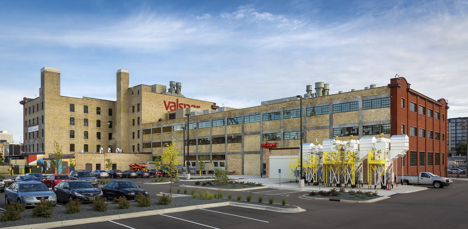Historical renovation of Valspar's former headquarters into a world-class research and development environment in downtown Minneapolis. An 88,266 s.f., 5-story facility built in 1903 and an attached 82,374 s.f., 3-story building from 1912 were renovated to include laboratory, meeting, training and office space; with an advanced mechanical infrastructure to handle the airflow requirements of the facility. The award-winning renovation provides state of the art safety, energy, and use-specific amenities in a facility that is on the National Register of Historic Places. The VAST project conserved and restored original materials including interior and exterior brick repair and wash, terra-cotta repair and wash, tuck pointing, stone, wood floors, windows, and support beams. All of the windows were removed for complete restoration, which included removing all of the finishes and glazing (containing lead) and reinstalled. Industrial artifacts such as steel track fire doors and a resin storage tank have been conserved and are displayed as accent pieces throughout the facility. The project team participated in an enhanced safety initiative in participation with Minnesota OSHA's Construction Health and Safety Excellence (CHASE) Level 3 program, completing over 185,000 man-hours without a lost time accident. Valspar is a global leader in the paint and coatings industry. https://youtu.be/RVdlH6yd4a0